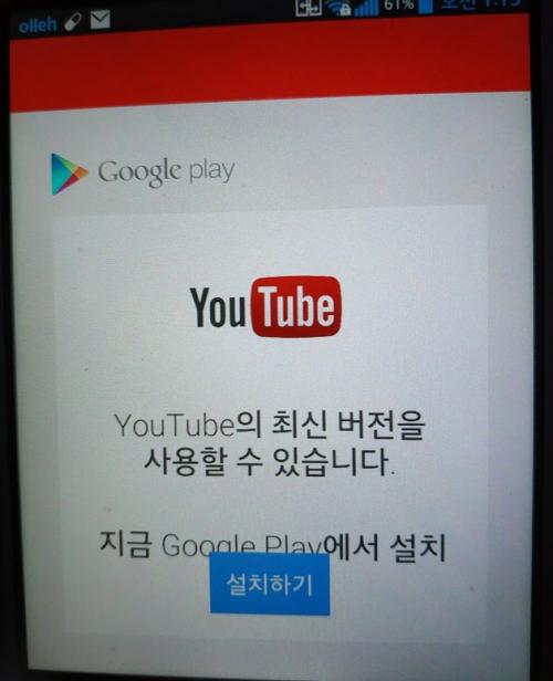 아님 google에서 youtube apk파일을 검색해 폰의 버전과 맞는걸 설치한다