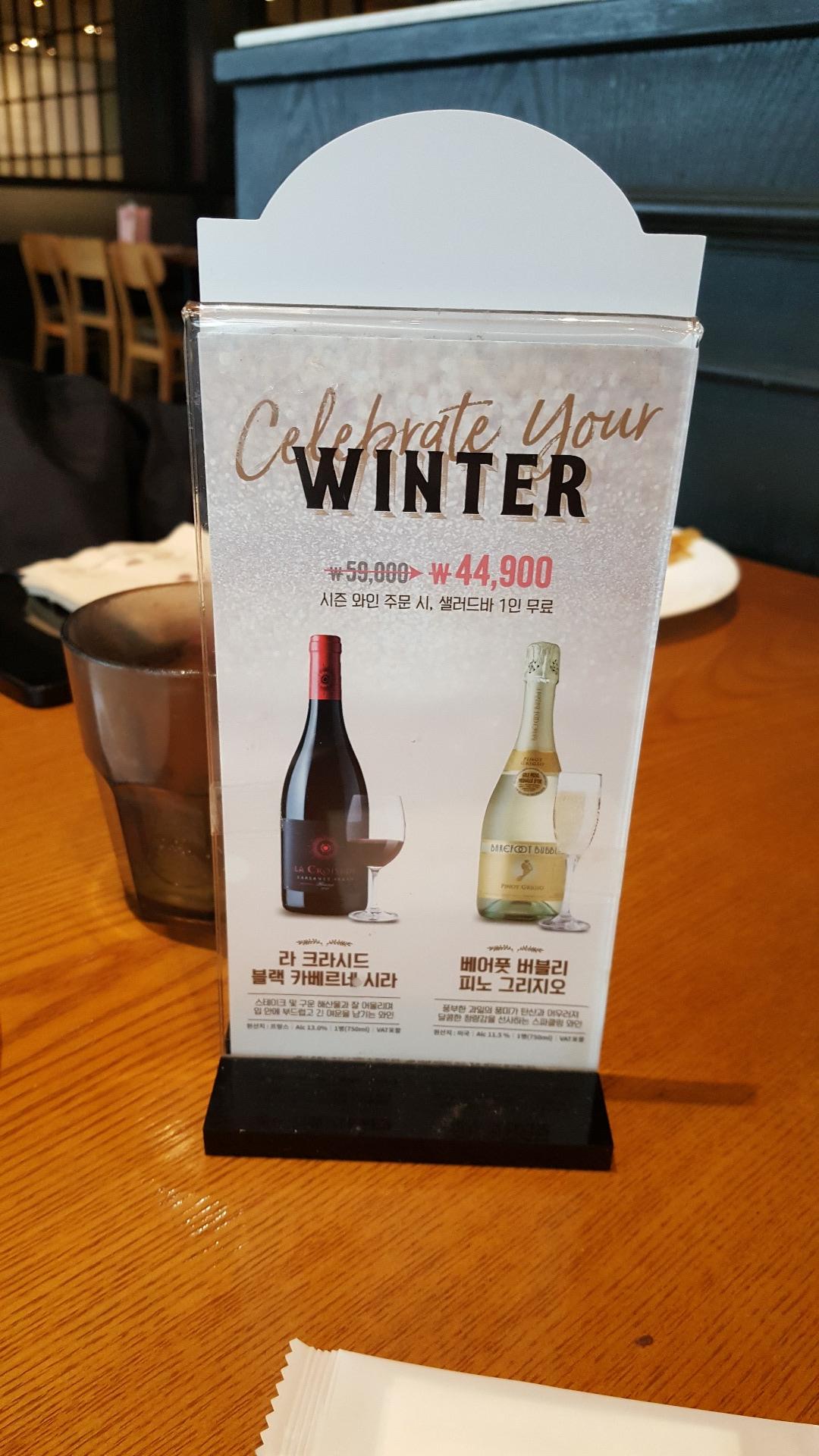 오오~~와인2병시키면 샐바2인에 와인잔까지 1인당 26,940 원인거죠?