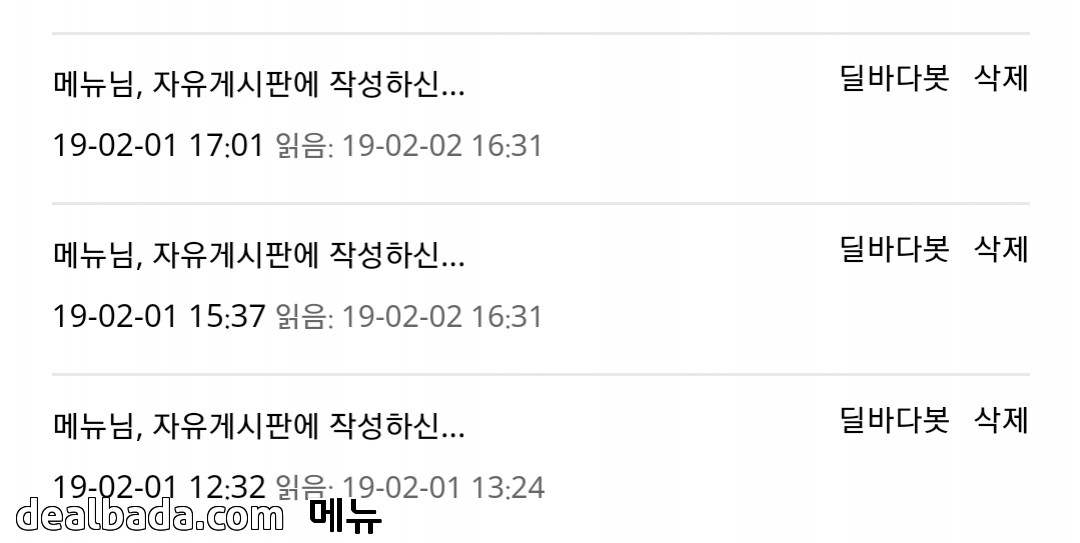 회사소개 개인정보처리방침 서비스이용약관 메일문의 Copyright © 딜바다닷컴 All rights reserved.