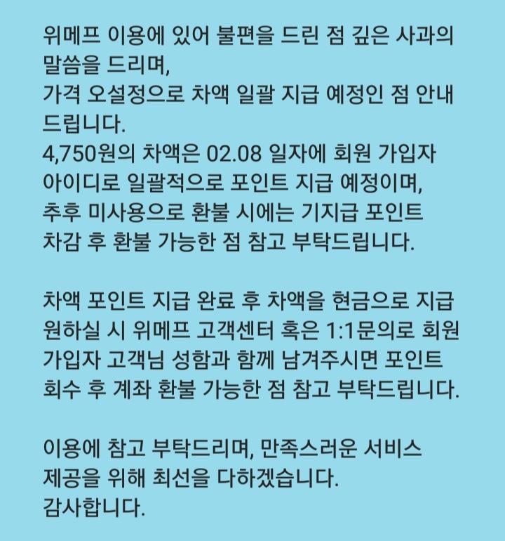 차액 + 알파를 포인트로 지급하는거 아닌 이상에는 현금이 낫죠 |