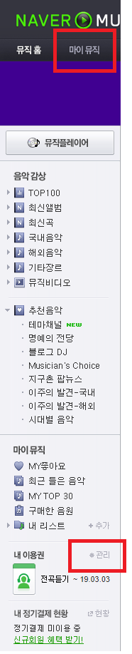 PC는 마이뮤직 -> 내 이용권 관리 -> 정기결제 목록에서 정기결제 해지하시면 됩니다.