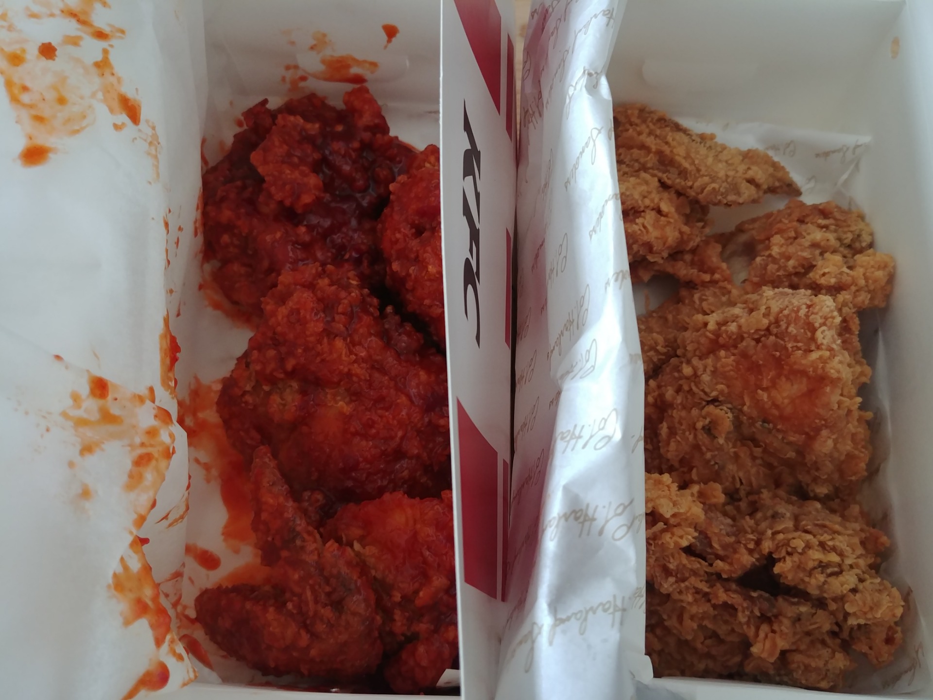 핫크리스피 4개 빨간맛 4개 시켰네요.