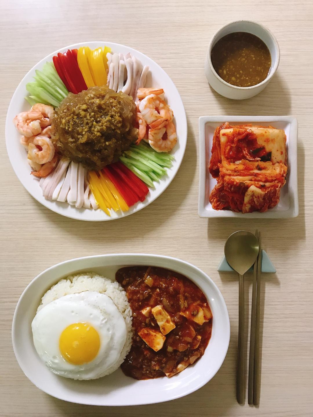 연두부 만든 마파두부덮밥 과, 해파리냉채.
