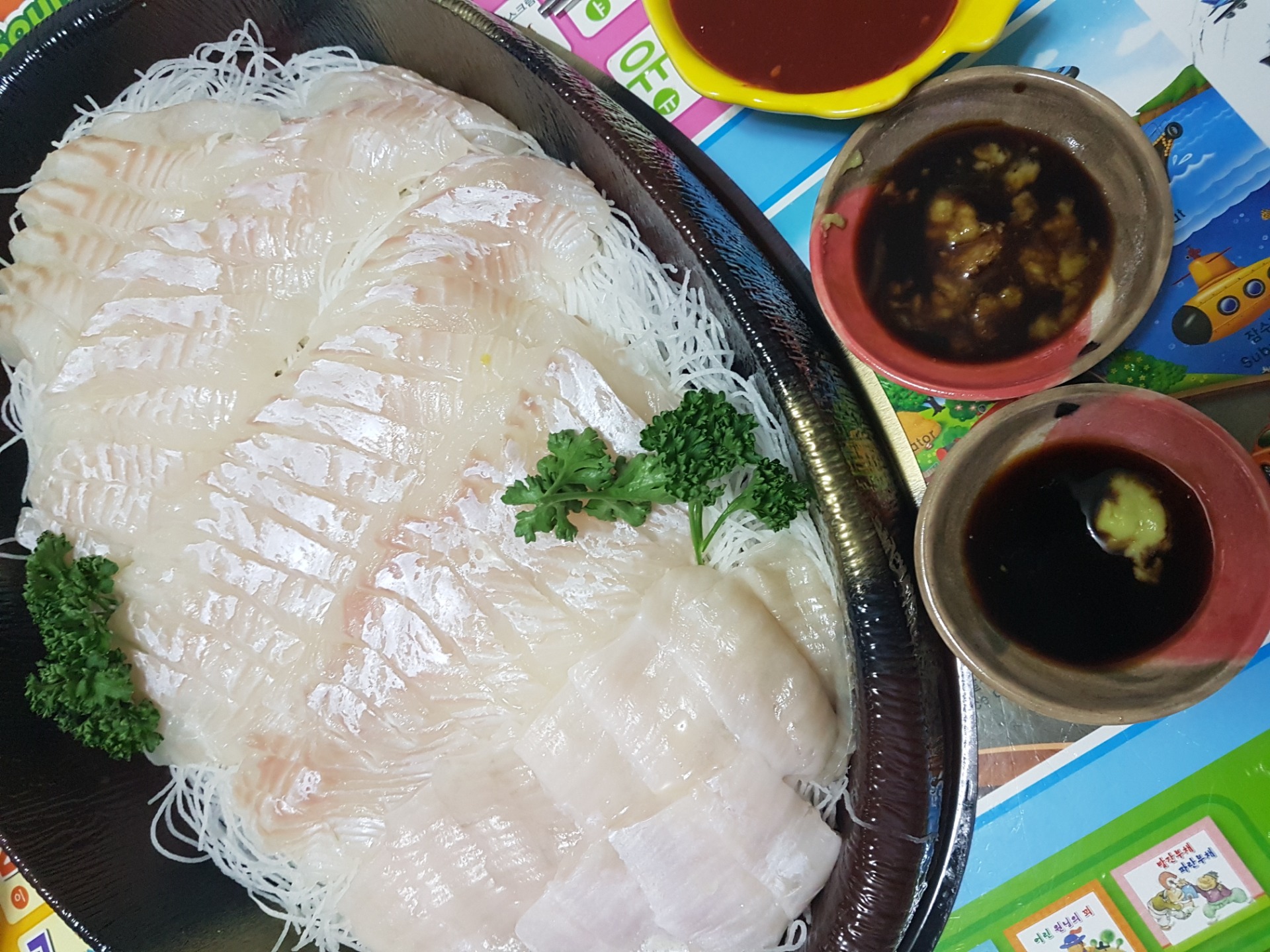 이건어떼 게시판에서 와이프가 좋아하는 광어회가 이마트에서 반값 할인 한다는 소식을 듣고 사가지고 왔습니다.