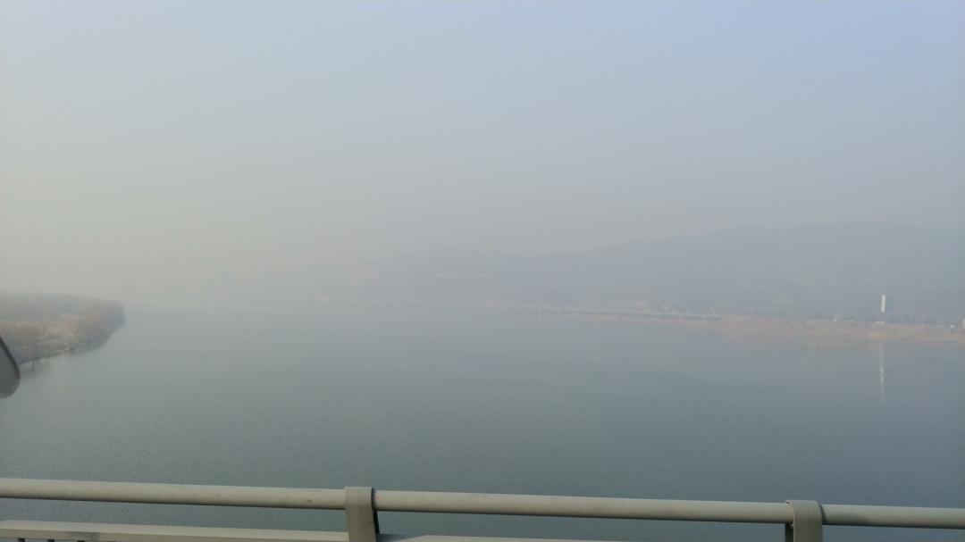 핸드폰 날씨 어플에도 빨간색..저는 부산이라 사무실에서 황령산 철탑의 선명도를 보면서 미세먼지를 판단하는데 오늘은 거의 흐릿하게 보이네요.. |