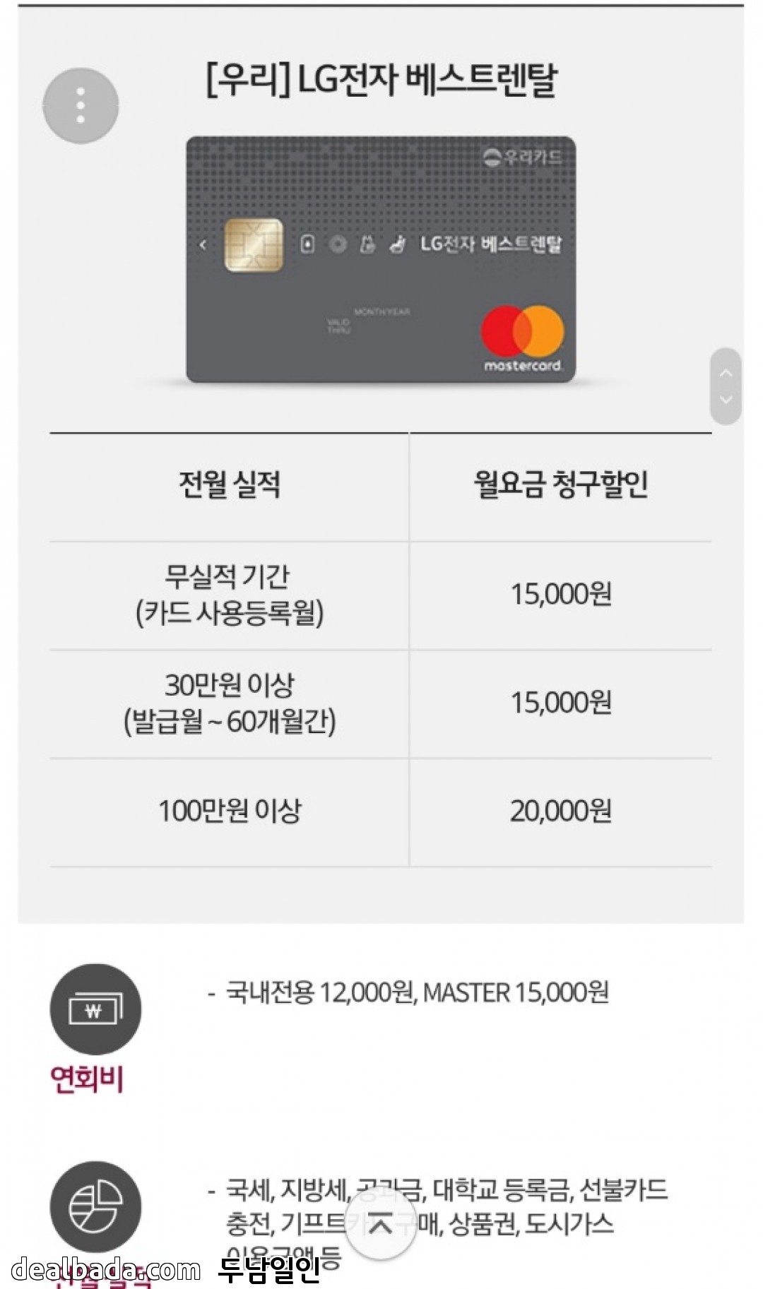 -, 연회비: 국내외겸용 mastercard 15,000원