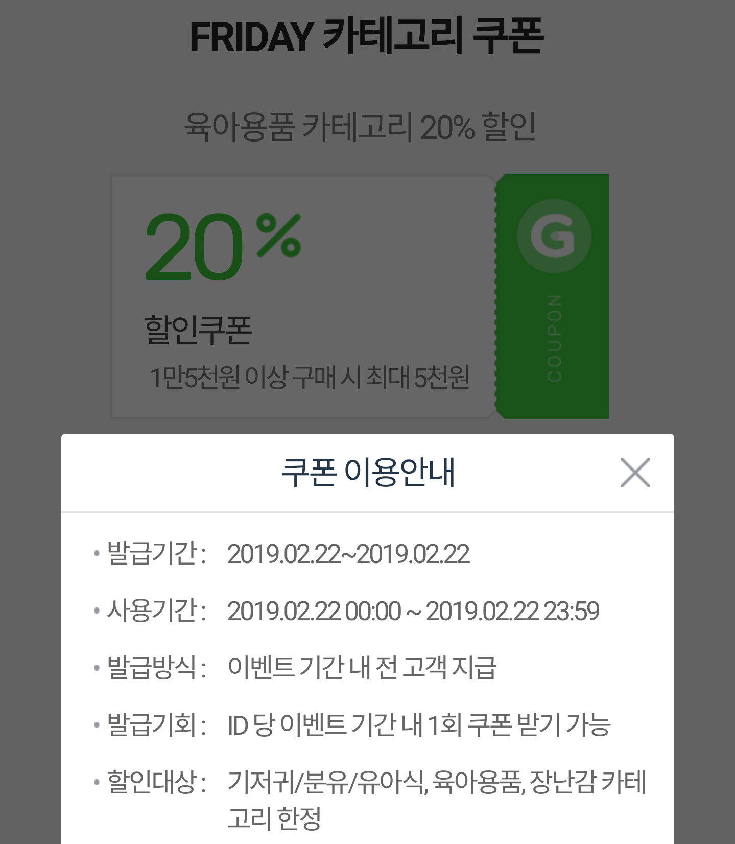오늘 지마켓 육아용품 카테고리 20% > 자유게시판