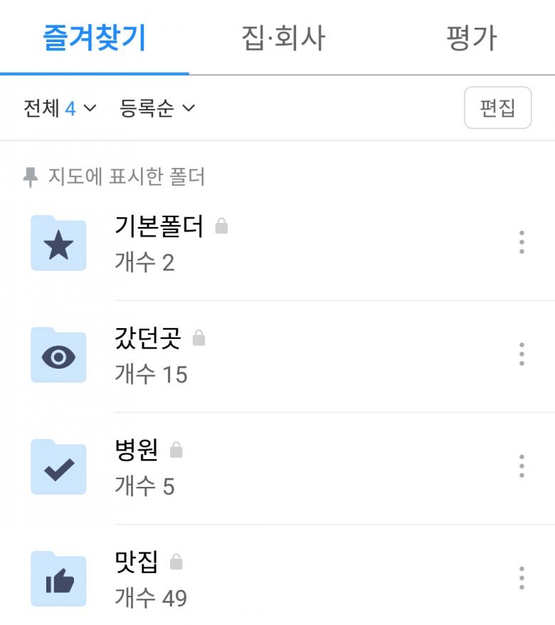 맛집이나 갔던곳 하나둘씩 저장하다보니 수십개로 늘어났어요.