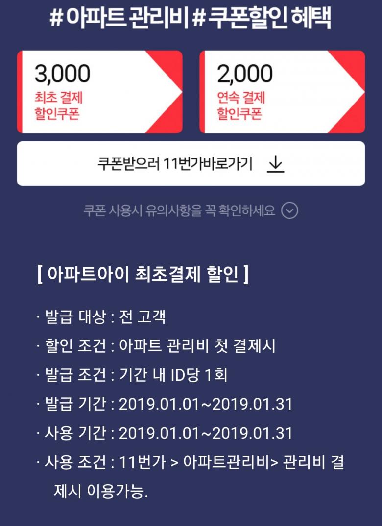 아파트아이 11번가 결제조건이요