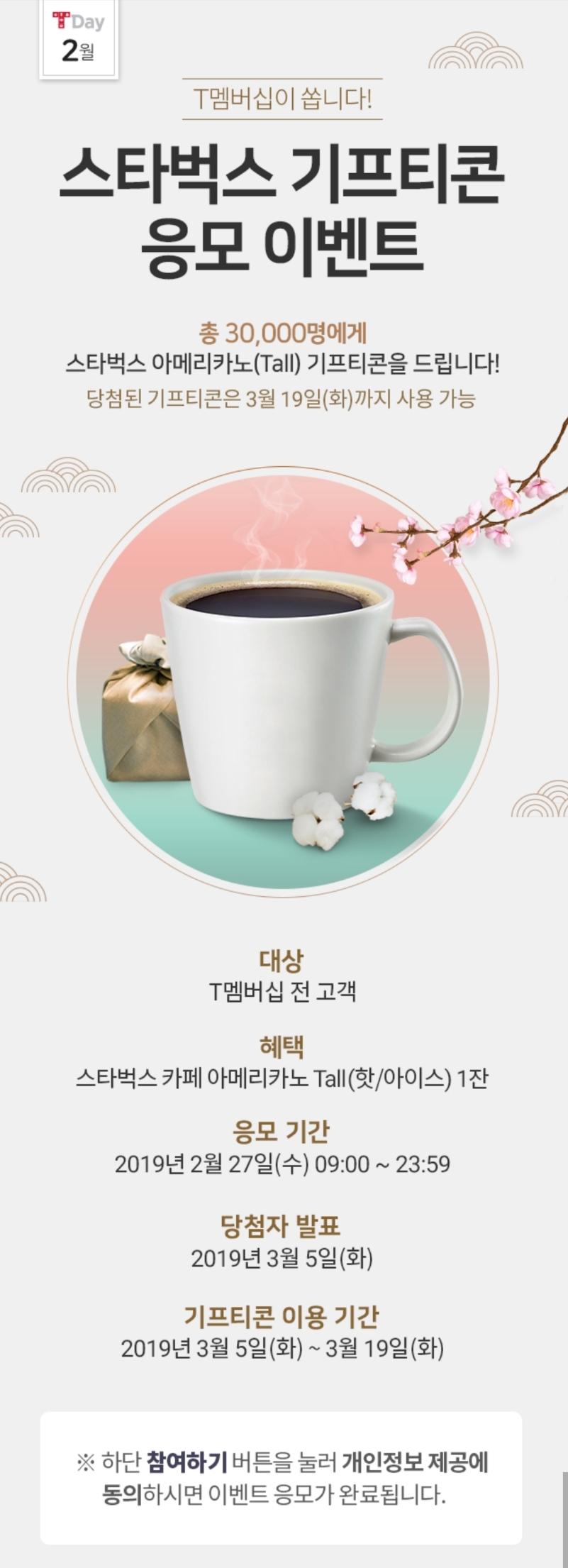 T멤버십 2월 Day 스타벅스 기프티콘 응모
