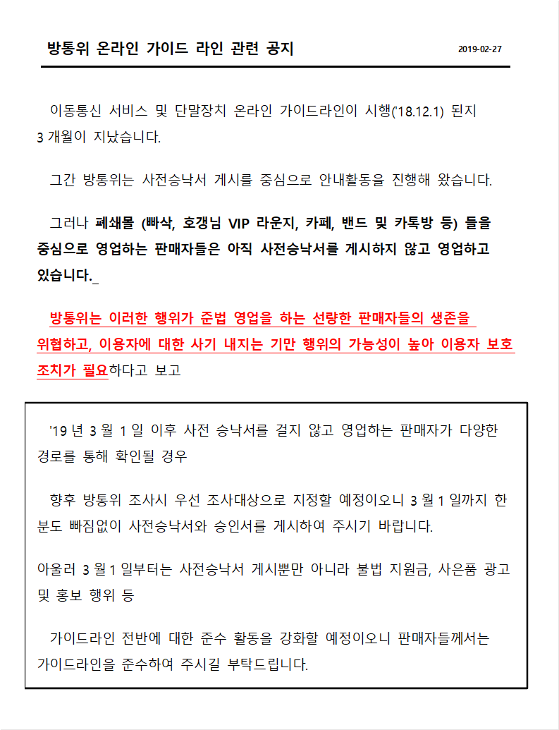 방통위 모니터링 강화 공지라는 게시글이 있어 들어가보니