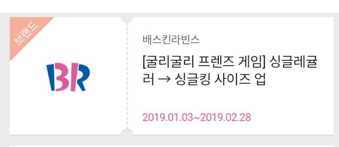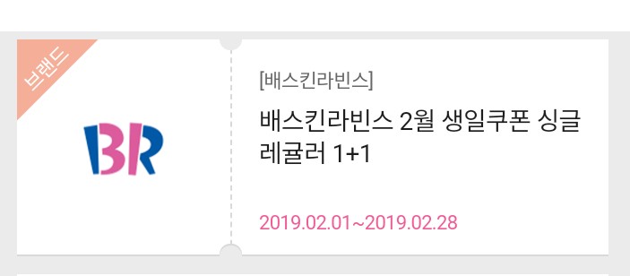 2. 배스킨 2월 생일쿠폰 싱글레귤러 1+1 : ~2/28