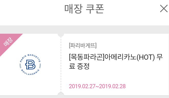 1. 목동 파라곤 파리바게뜨 아메리카노 (HOT) : ~2/28