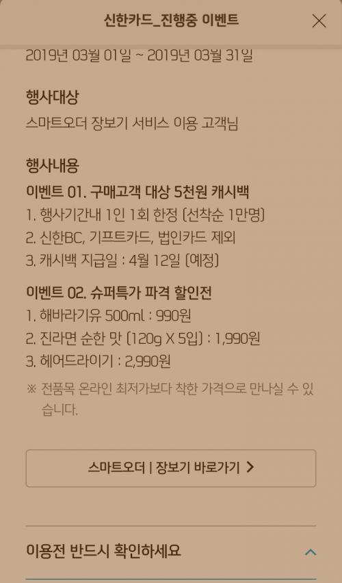 페이판 스마트오더에서 3만원 이상 구매시 5천원 캐시백 이벤트합니다. 해바라기유가 990원으로 저렴하고 갯수제한 없어서 품절이었는데 지금 들어가보니 1인당 3개까지 구매가능하게 바뀌었네요.