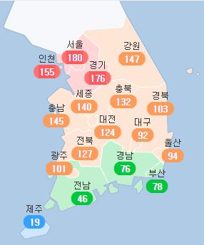 제주도는 유일하게 파란색이네요.