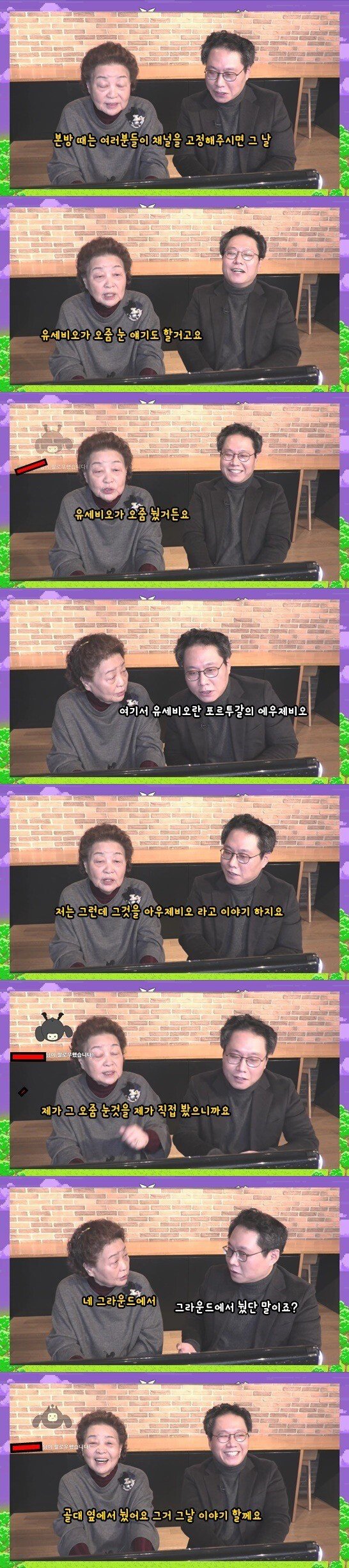 짤보니 에우제비오 그라운드에서 오줌싼얘기부터 축덕이시던