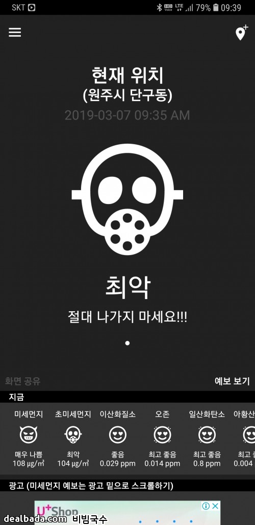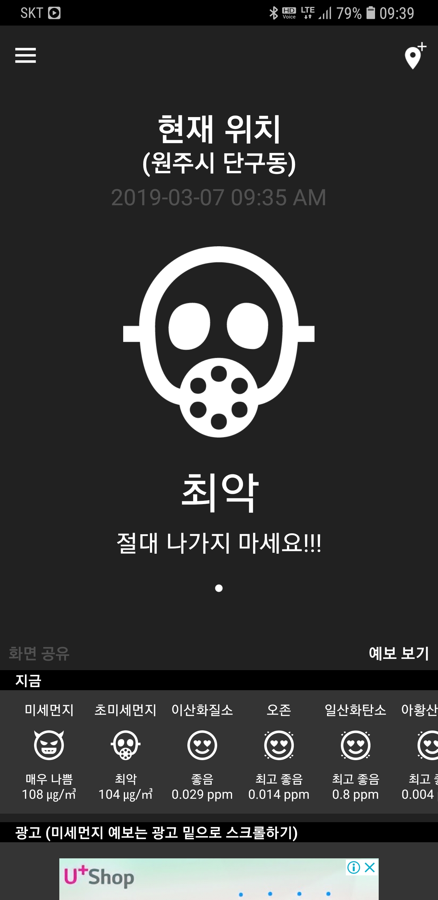 서울도 지역에 따라 달라요... 제가 사는지역은 상당히 나쁨 뜨네요 ㅠ | ||