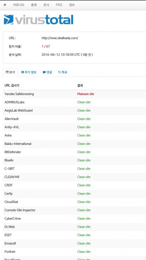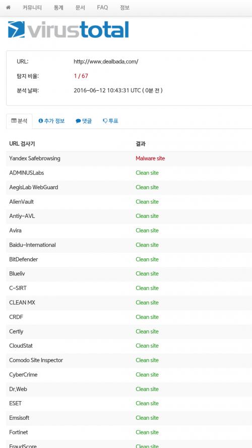 67개 중 얀덱스만 딜바다가 악성코드 있다 경고하긴합니다 > 자유게시판