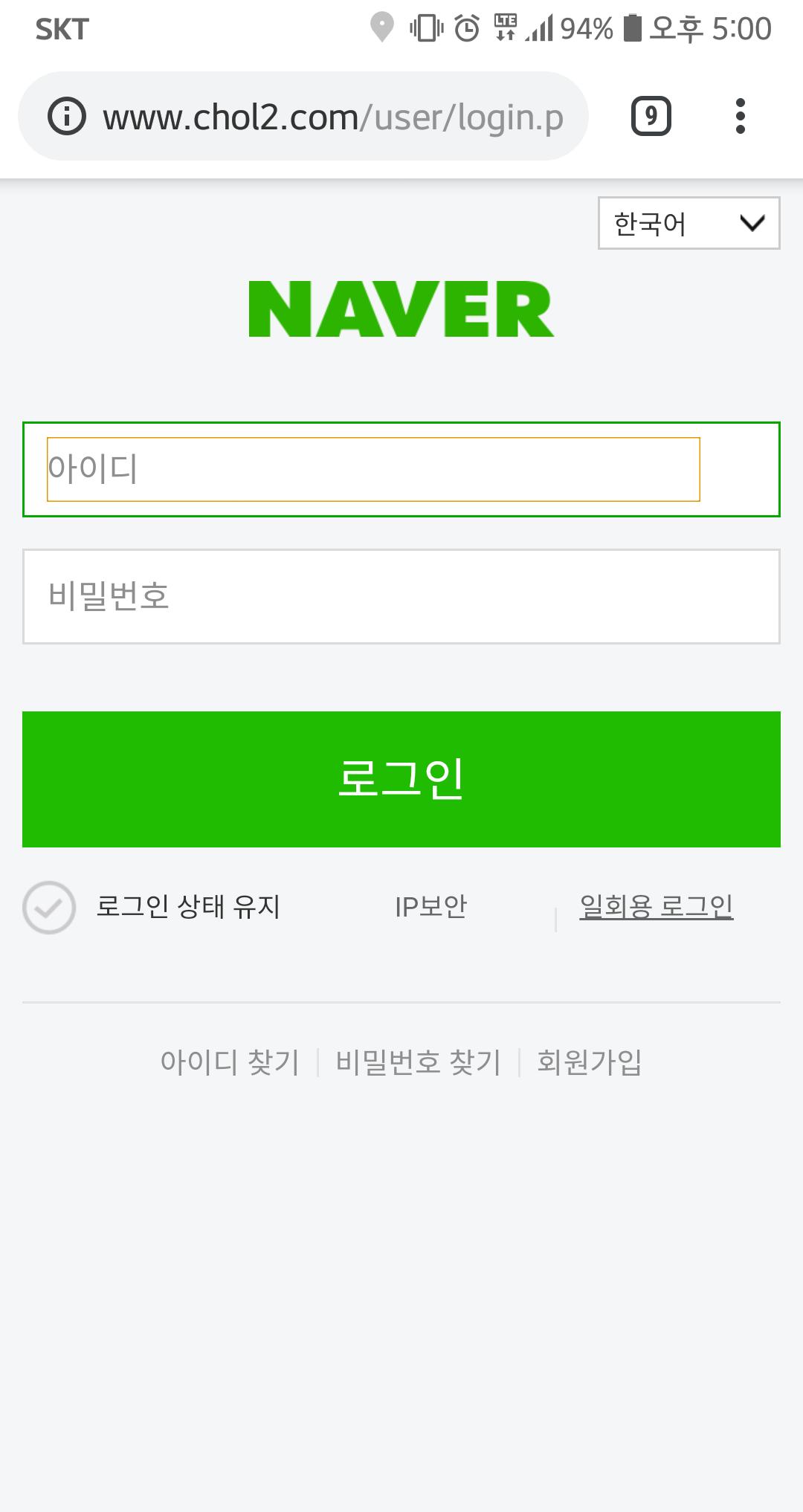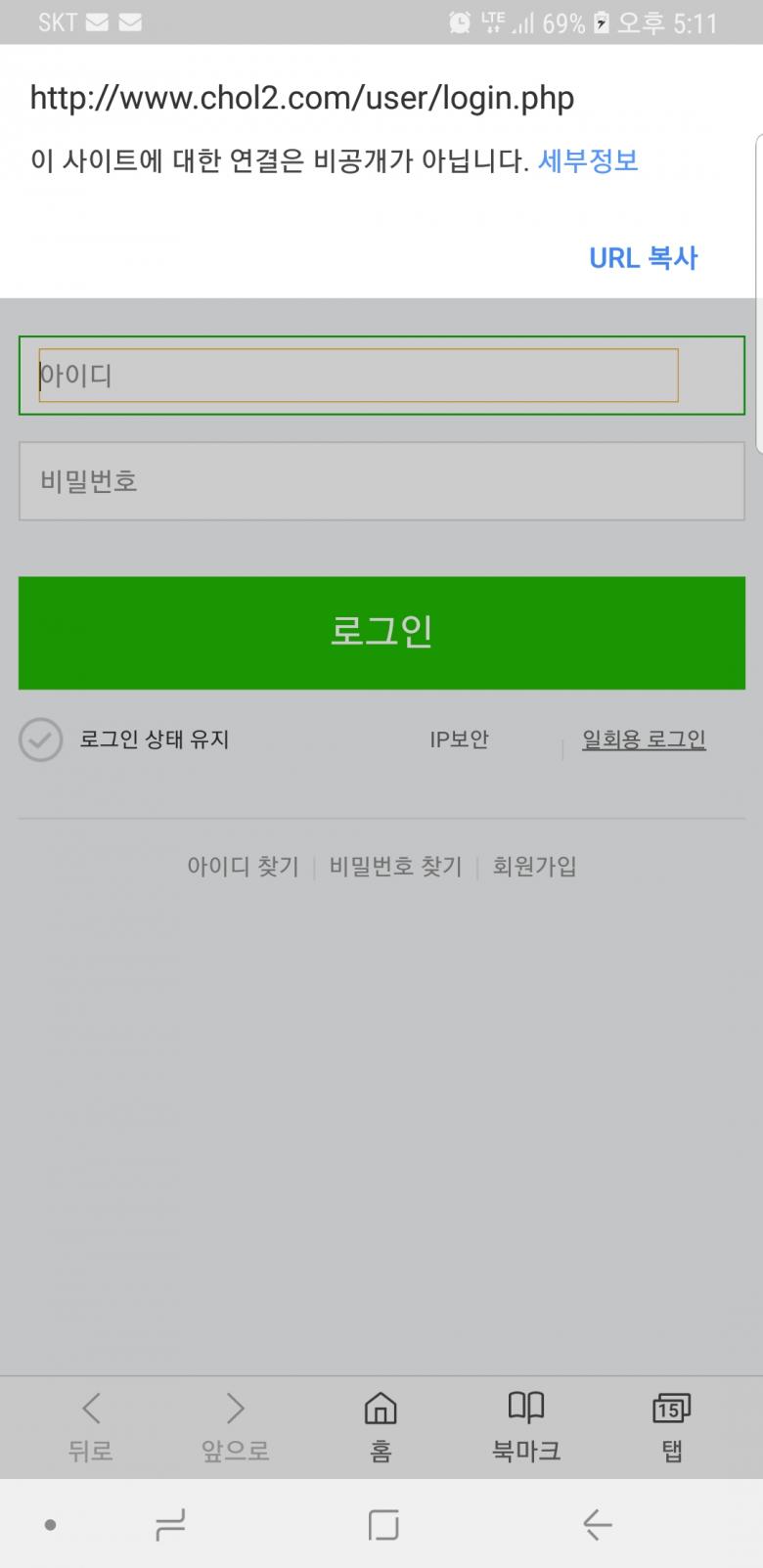 로긴하려다가 주소보니 www.chol.com 어쩌구..