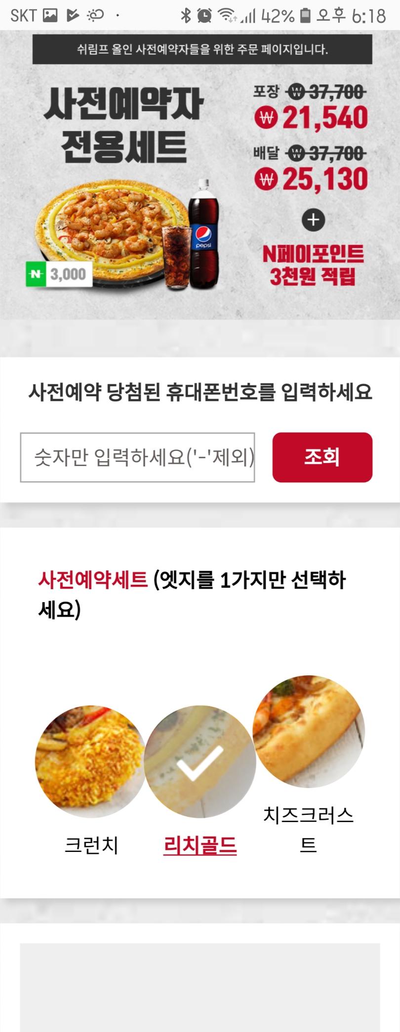 피자헛 쉬림프올인 사전예약쿠폰~완료