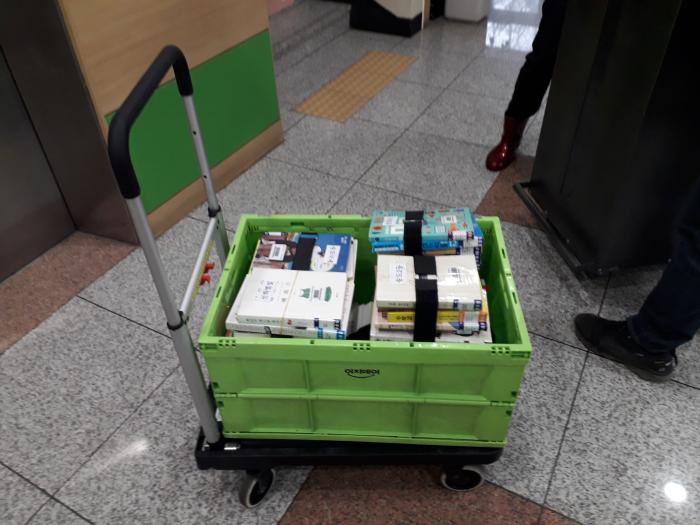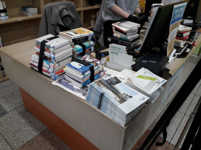 아직 엘리베이터 타고 내려오는 책들도 있고, 대기중인 책도 있고.