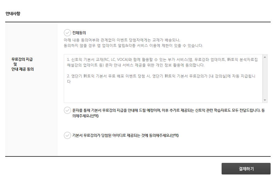 - 배송비 결제 후 이벤트 기간 안에 선택한 교재에 한하여 배송이 진행됩니다.