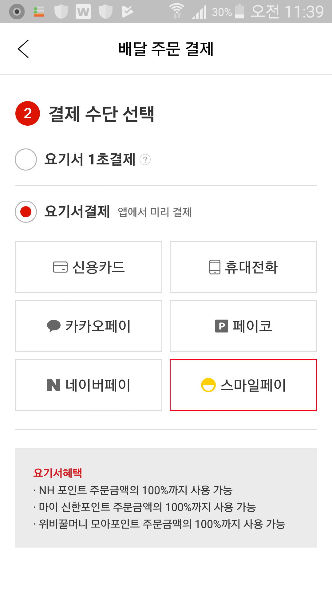요기요 업데이트 하시면 스마일페이 되네요 > 자유게시판