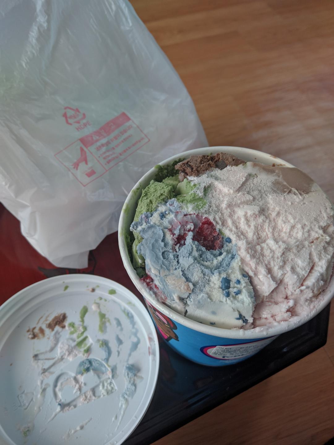 전 무료배송 가게가 있어서 파인트 2개로 여러가지 맛 시켰어요 |