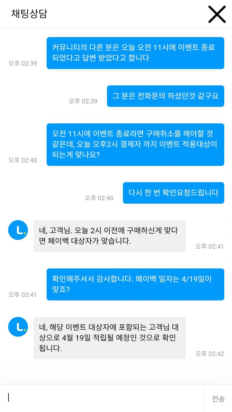 오후2시까지 구매한 건은 페이백 된다고