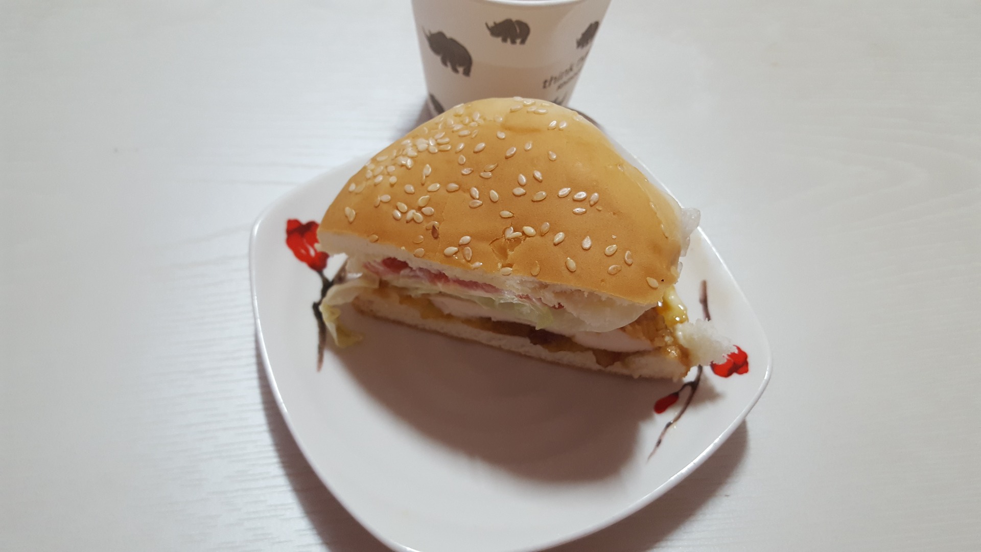 햄버거 보다 접시가 이쁘네욥 'ㅁ'? |
