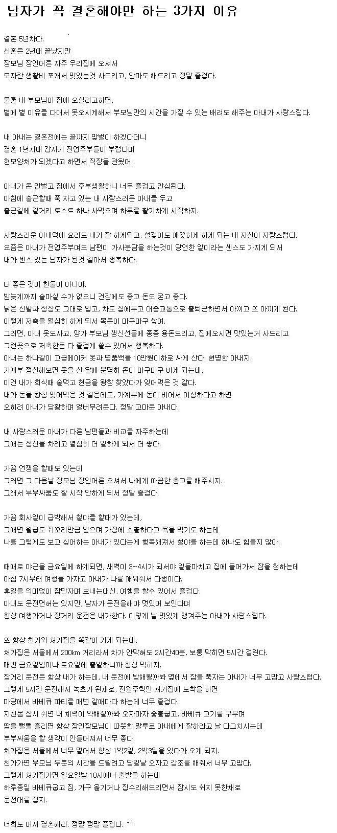 이 글을 보니 중매싸이트에 당장이라고 등록해서 결혼하고 싶어지네요 ㄷㄷ... |