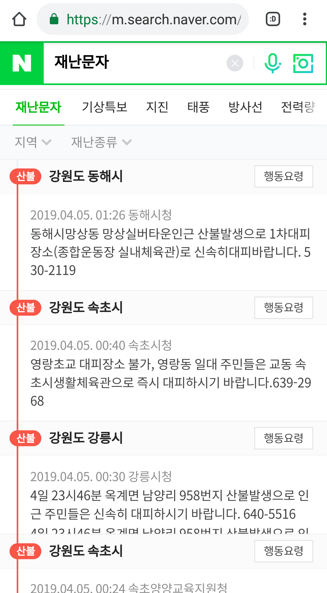 네이버에서 전국의 재난문자를 실시간으로 보여주네요 > 자유게시판