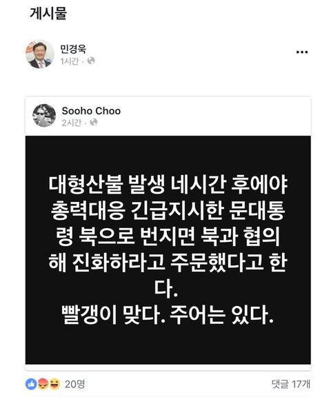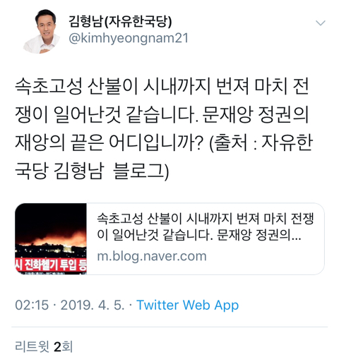 산불보고 안타까운 마음과 걱정이 먼저 들었는데 이때다하고 이용하려는 모습이 진짜 한심해요. |