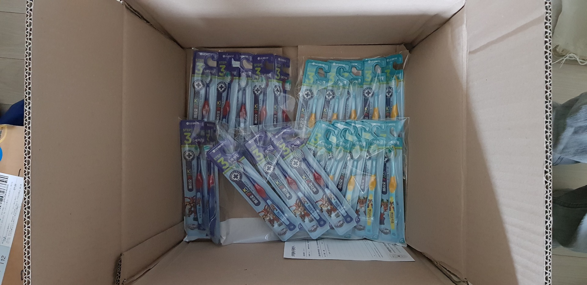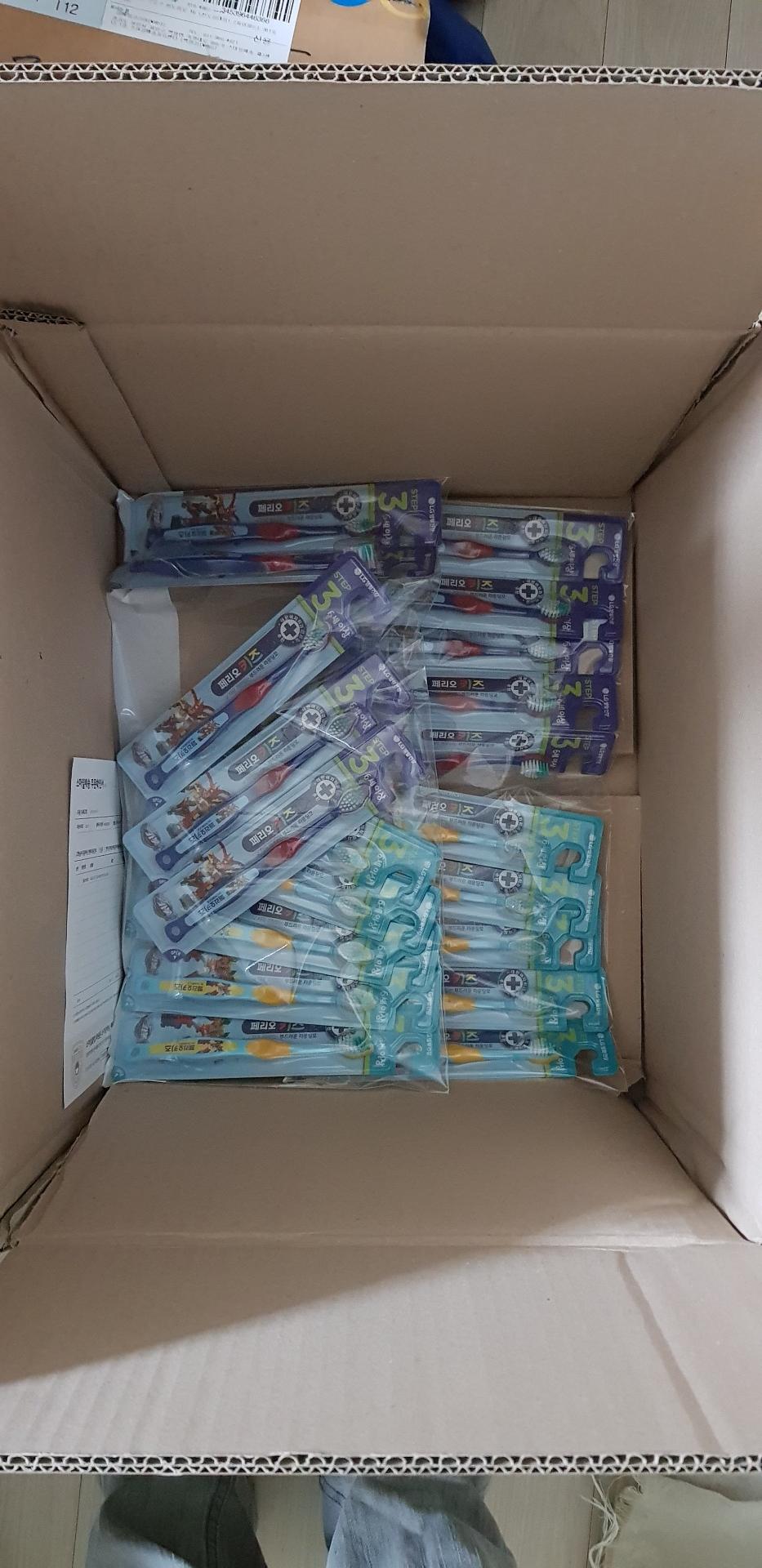 택배 내용물 오픈하면 안됩니다 ㅠ 지금 쓰는 칫솔 다 폐기하고 배송온것 쓴다고 할듯요~ 헬로카봇~ ㅎㅎ