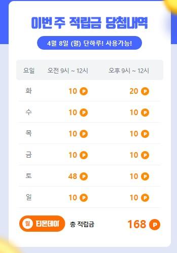 전 3번 깜빡하고 놓쳤고 총 적립금은 1294원이라서 룰렛 전이랑 비슷하네요