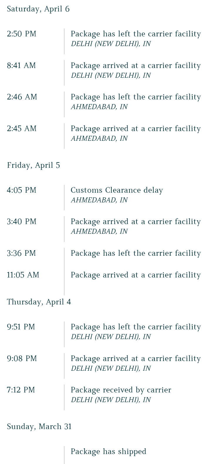 ps : 아래같이 표기되면 뉴욕에서 배송하는거로 알았는데 인도에서 배송을 시작하네요
