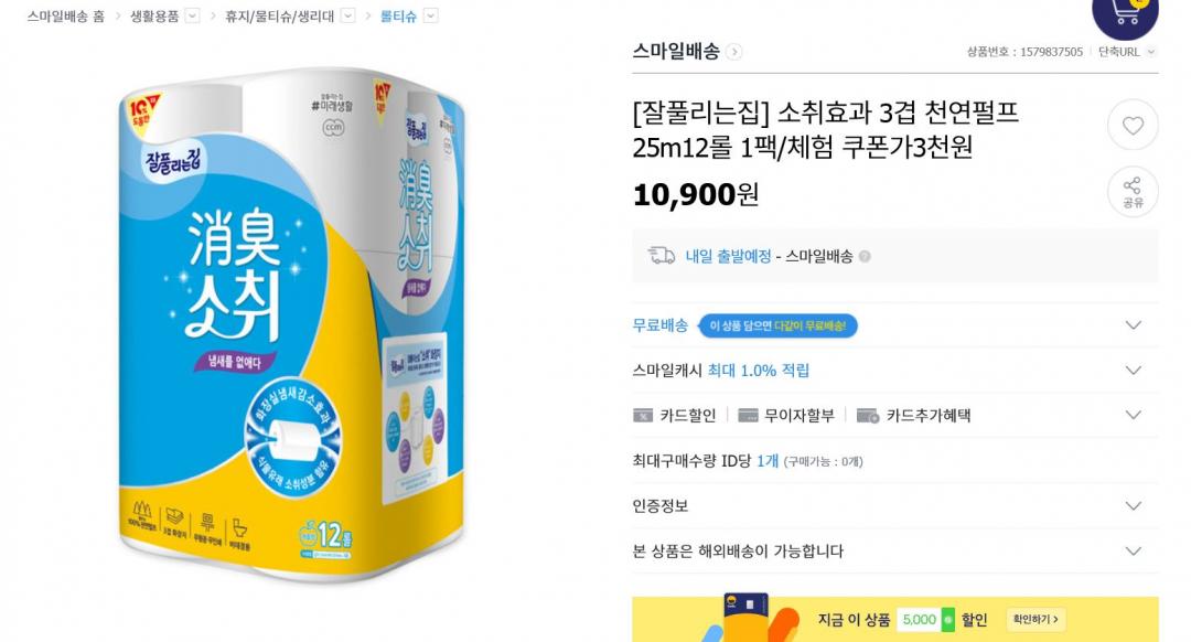 원래 내일부터 오픈인데 어쩐일인지 지금부터 쿠폰 발급이 가능하더라고요 스마일배송이니까 다른 상품 구매하실 분들은 이거 장바구니에 넣으면 무료배송!!입니다 ㅎㅎ