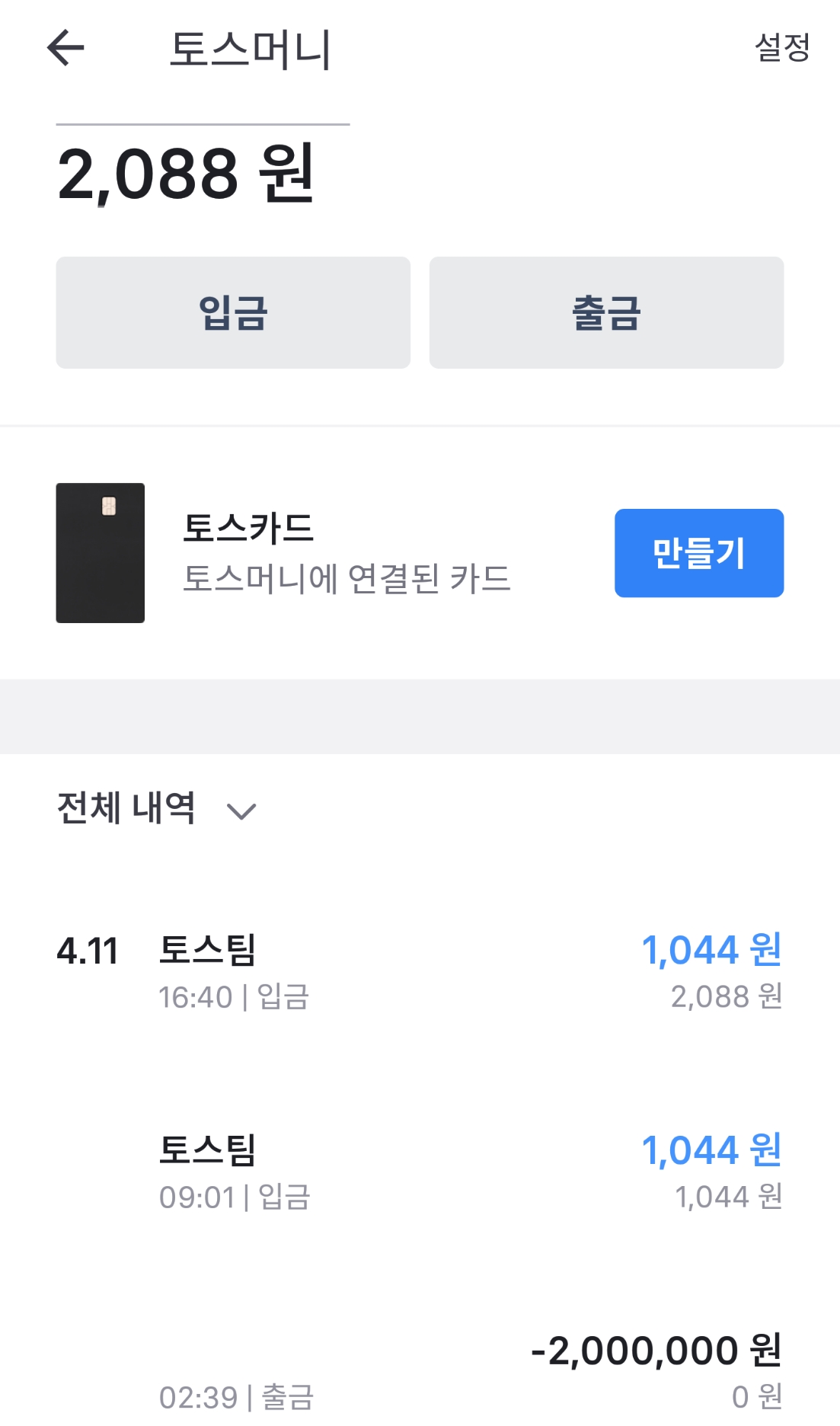 출금하고 토스랑 빠이빠이 할랬는데 쫄려서 못빼겠네요 ㅋㅋ