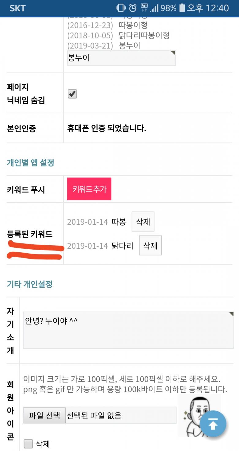 설정상에 보니까 키워드 알림받기 기능이 있긴 있는 것 같은데