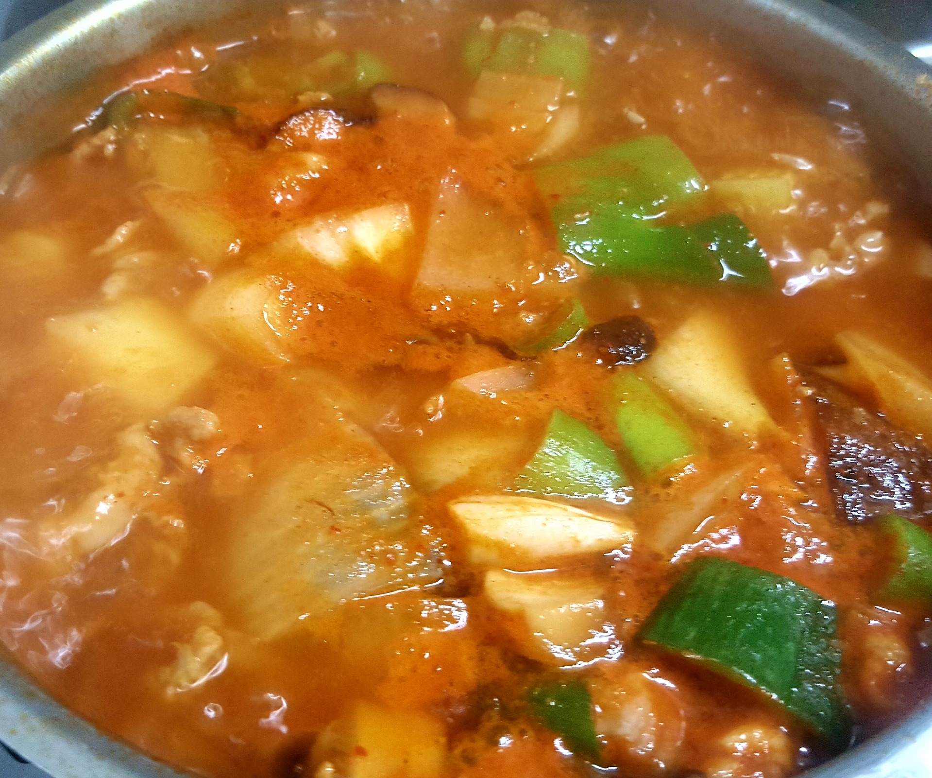 두부는 빼먹었어요..대신 감자링 돼지고기 애호박 표고버섯 양파는 잔뜩 넣었네요..