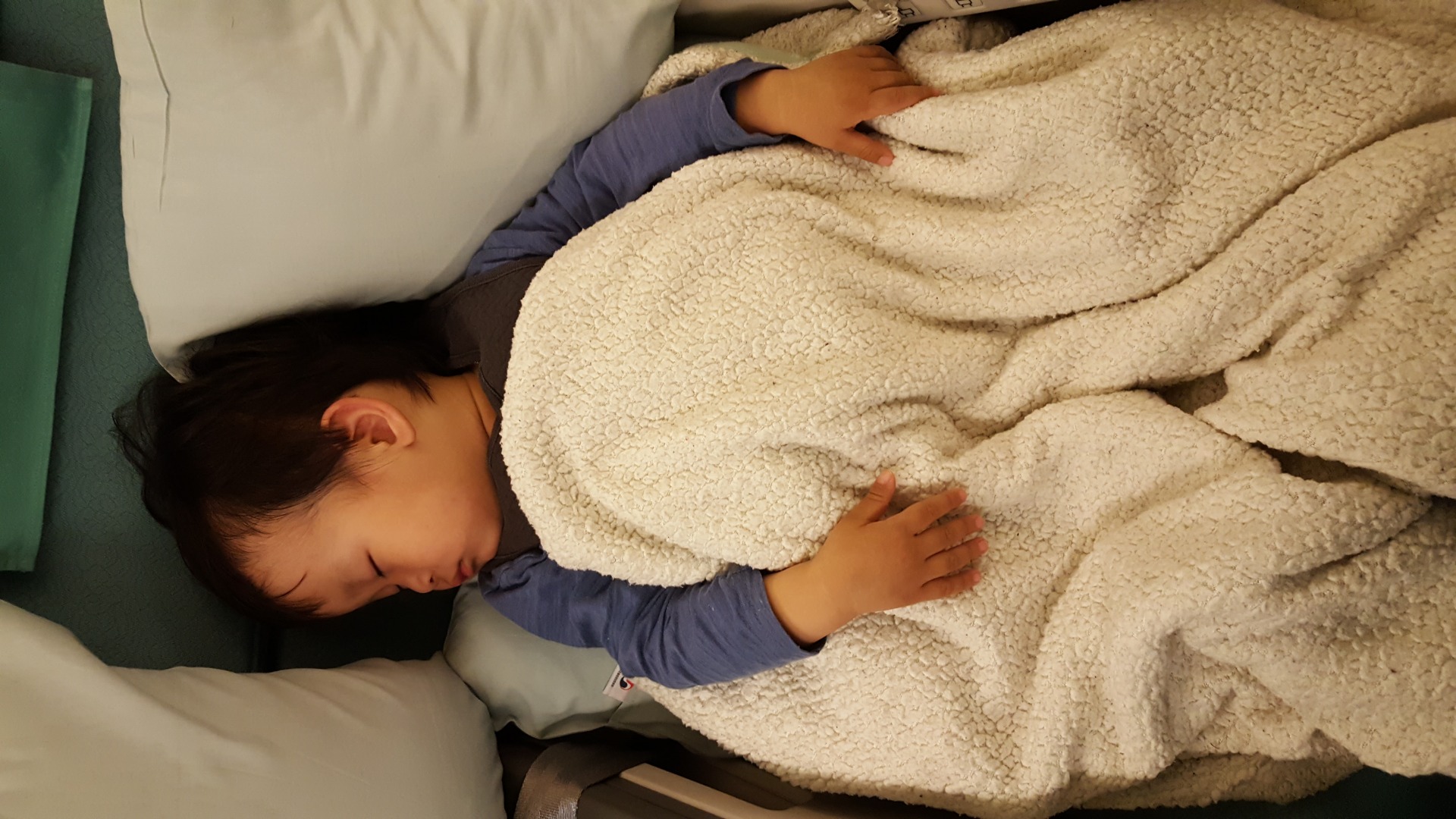 엄청 기특한데요. 비행이 많이 어색하고 불편할텐데 곤히 잘 자네요. |