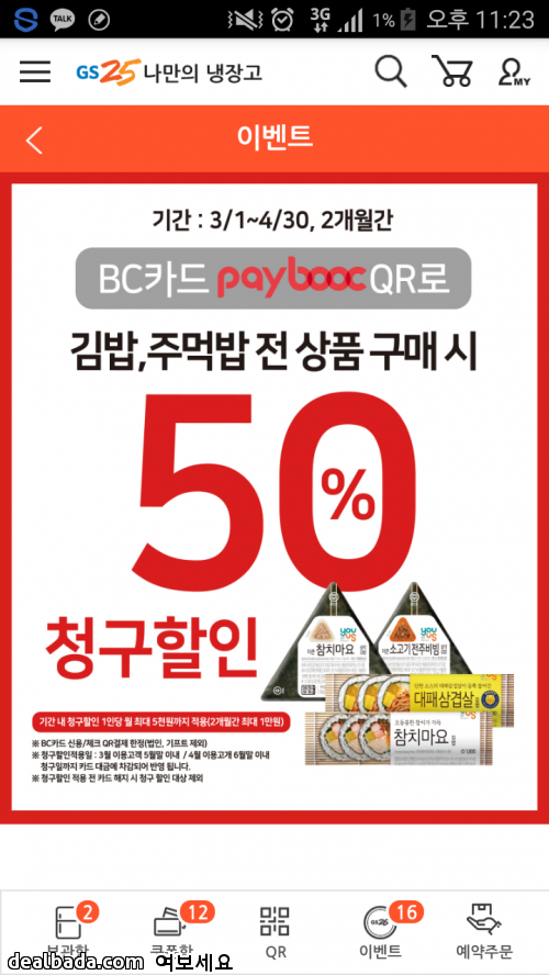 결제하자마자 페이북 알람으로 500원 차감은 바로 알림떴는데 50프로는 확인이 불가능해서요.