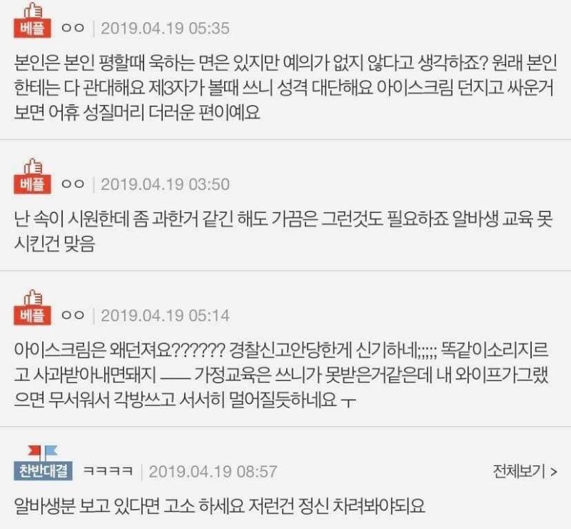 별거도 아닌데 욱해서 아이스크림를 사람한테 던진건좀... 휴 |