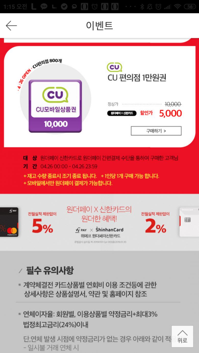 원더페이 카드 전용딜인데 신한카드가 랜덤으로 되는 것 같아요 필요하신 분은 있는 신한카드 한번 등록해보세요