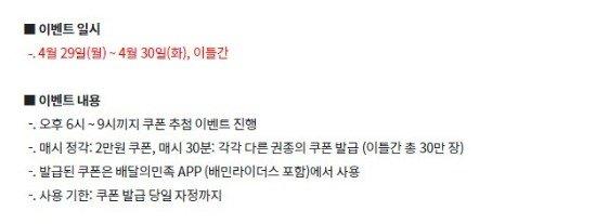 월, 홯 각각 1만명 선착순으로 알고 이써요~ |