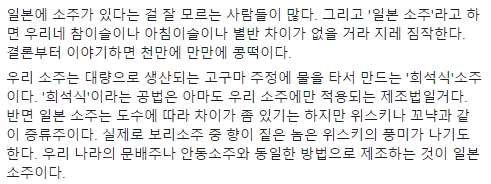 제가 보리소주와 고구마소주 둘다 마셔봤는데 맛은 괜찮더군요..확실히 우리나라 희석식소주보다 낫습니다. |