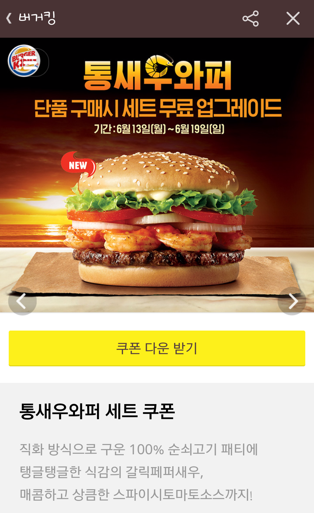 사람마다 다른가봐요.. 저번주에 통새우스테이크먹었는데.. 저는 머쉬룸와퍼가 제일 괜찮았는데.. | ||