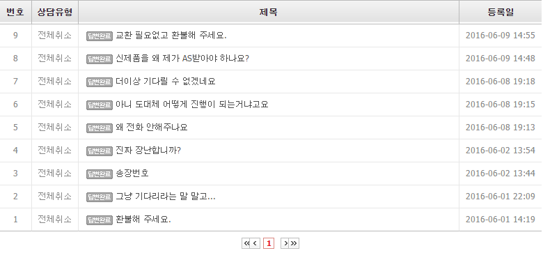 그리고는 교환과 물품반품 신청은 일방적으로 보류시켜버렸습니다.