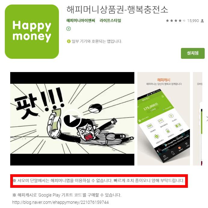 그런데 해피머니 앱이 실행이 안됩니다 ㅋㅋㅋㅋ