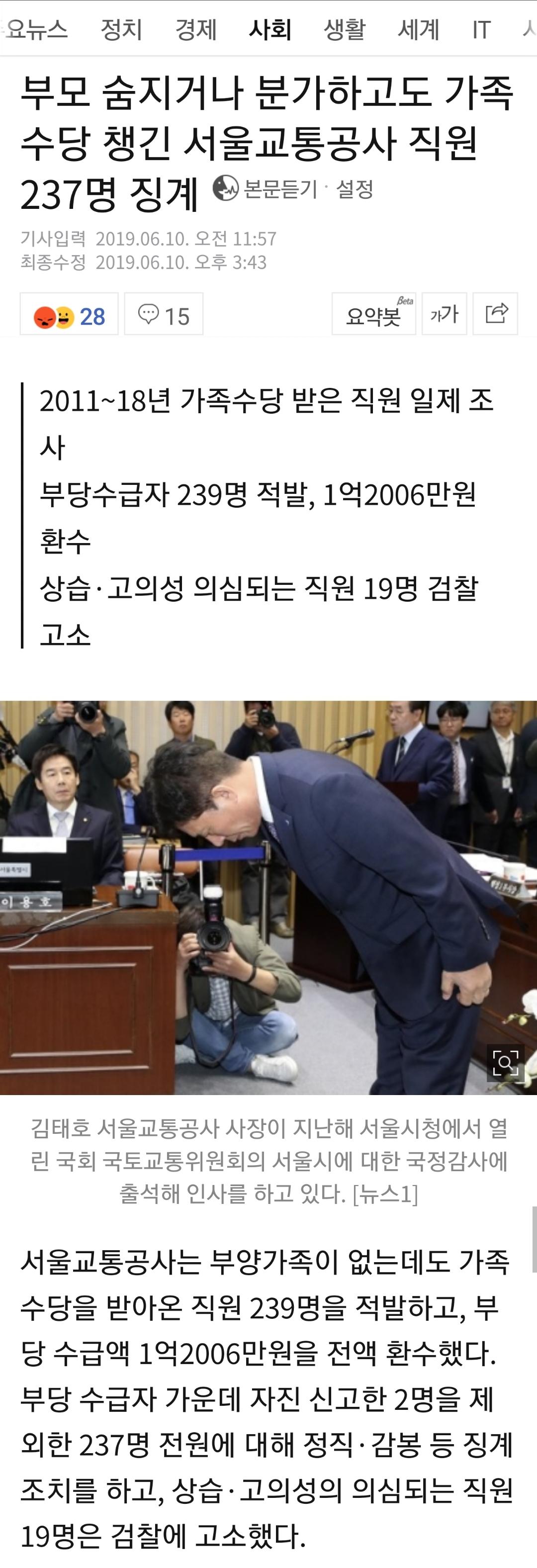 올해초까지 수많은 가족이나 지인들을 무기계약직으로 불법채용하고도 파면실형은 개나주고.. 각종수당을 편법으로 횡령해도 대부분이 경징계니... 서울교통공사가 사기업이면 이따위로 처벌했을까요?!